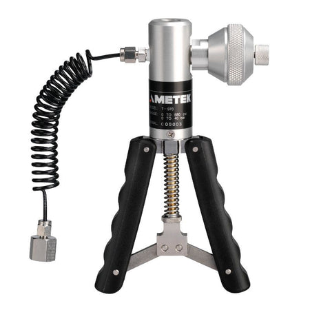 The AMETEK T-960 Pneumatic Hand Pump is designed for generating pressure and vacuum with precision and ease. It is particularly useful for calibrating pressure instruments and testing various devices in industrial applications.