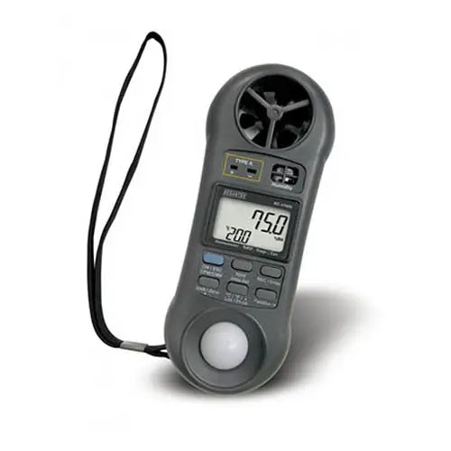 - Multi-Functionality: Measures air velocity, airflow (CFM/CMM), humidity, temperature, and light levels.