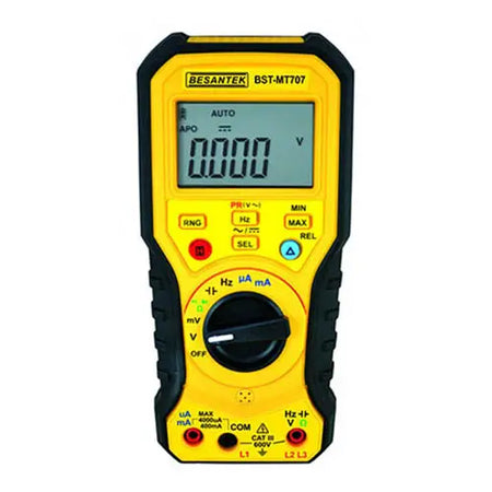 The BESANTEK Digital Multimeter and Phase Rotation Tester BST-MT707 is a versatile instrument designed to measure AC/DC voltage, current, frequency, capacitance, resistance, diode, phase rotation, and continuity. It is particularly useful for electricians and technicians working with electrical systems.