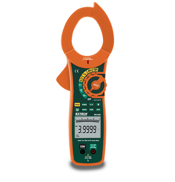 يُعد مقياس التيار من اكستيك MA1500 القوي، قادرًا على قياس تيارات التيار المتردد والمستمر حتى 1500 أمبير. يتميز بتقنية RMS الحقيقية للحصول على قراءات دقيقة لأشكال الموجة غير الجيبية، ويشتمل على جهاز استشعار مدمج للجهد بدون تلامس (NCV).