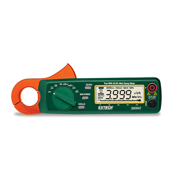 يُعد جهاز Extech 380942 الصغير عبارة عن مقياس قفّاز صغير لقياس التيار المتردد/ المستمر بقدرة 30 أمبير. يتميز مقياس القفّاز بدقة قياس رائعة تبلغ 0.1 مللي أمبير (تيار متردد)، وحساسية للتيار المنخفض جدًا، وفك صغير في القطر مصمم للوصول إلى المناطق الصغيرة. تم تصميم نطاق 30 أمبير مع دقة 0.1 مللي أمبير (تيار متردد) و 1 مللي أمبير (تيار مستمر) للعثور على المشاكل التي قد لا تلاحظها مقاييس القفّاز القياسية بسبب اختلاف التيار المنخفض جدًا. يُعد جهاز قياس القفّاز الصغير هذا مفيدًا في مهام استكشاف الأخطاء وإصلاحها في صيانة المصانع، والكهرباء، وتكييف الهواء والتدفئة، وأعمال الاتصالات، بالإضافة إلى إصلاحات الكهرباء السكنية، وصيانة الأساطيل، والبحرية، والدراجات النارية. يأتي جهاز قياس القفّاز الصغير هذا المصنف CAT III True RMS مع أسلاك اختبار، و 2 بطاريات AA، وحقيبة حمل ناعمة، ودليل المستخدم.