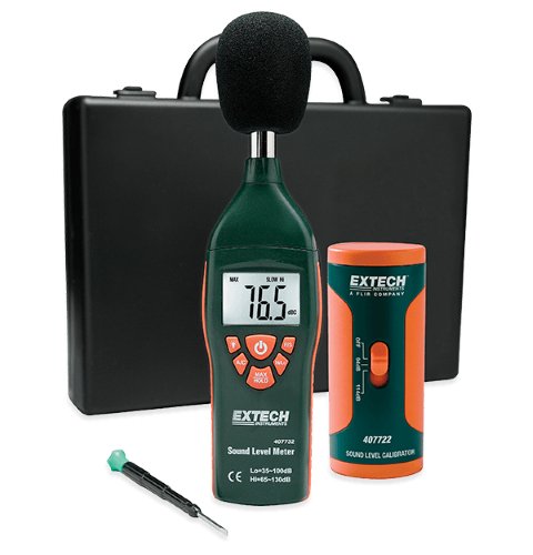 يأتي كاملاً مع مقياس الصوت 407732، وشاشة واقية للميكروفون، ومفك براغي للضبط، وبطارية 9 فولت، بالإضافة إلى جهاز ضبط الصوت 407722 مع بطارية 9 فولت. يتم توفيره في حقيبة حمل صلبة جذابة توفر الحماية والترتيب لمقياس الصوت وإكسسواراته.