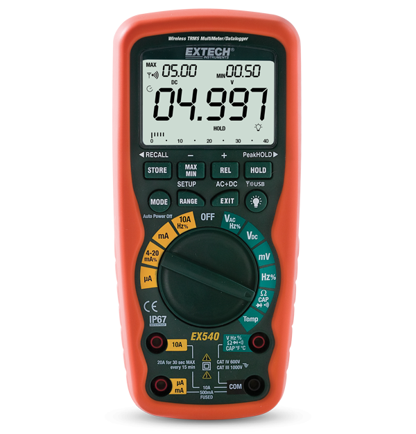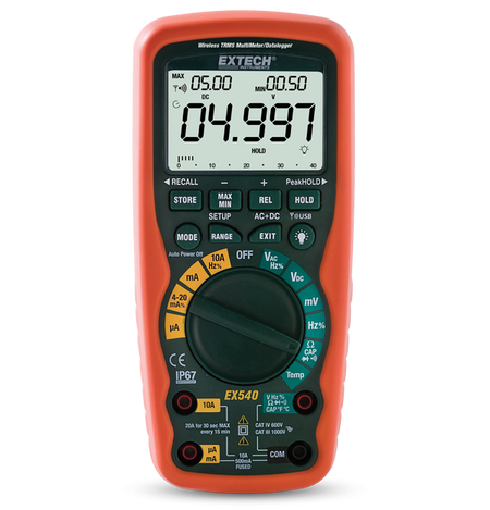 يُعد جهاز من اكستيك EX540 متعدد الاستخدامات، وهو عبارة عن مقياس متعدد القياسات لاسلكي لقياسات الجذور التربيعية الحقيقية (True RMS) ذو 12 وظيفة، ويستخدم في الصناعة، بالإضافة إلى كونه مسجل بيانات. وهو مصمم لإجراء قياسات دقيقة في تطبيقات كهربائية متنوعة، مما يجعله مناسبًا للمحترفين في البيئات الصناعية.