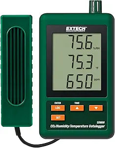 يُعد جهاز من اكستيك SD800 جهاز تسجيل بيانات متطور لقياس ثاني أكسيد الكربون والرطوبة ودرجة الحرارة، مصمم لرصد جودة الهواء في بيئات متنوعة مثل المكاتب والمدارس والمساحات الخضراء. يتميز الجهاز بمستشعر NDIR (الاشعاع تحت الأحمر غير المشتت) ثنائي الطول الموجي لقياس ثاني أكسيد الكربون، والذي لا يتطلب صيانة، ويقدم قراءات دقيقة لمستويات ثاني أكسيد الكربون ودرجة الحرارة والرطوبة.