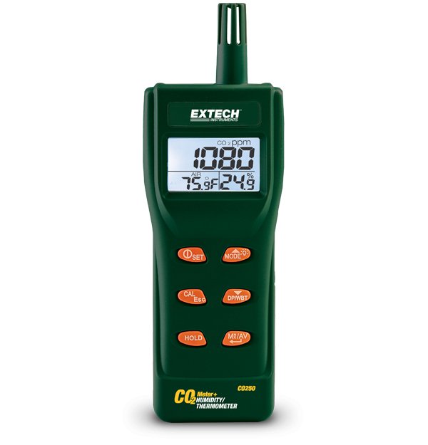 من اكستيك CO250 جهاز قياس جودة الهواء الداخلي المحمول لقياس ثاني أكسيد الكربون