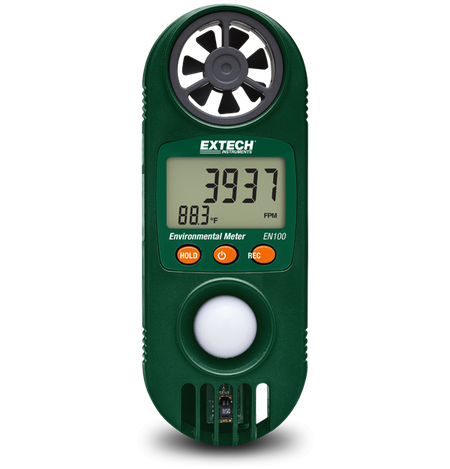 يُعد جهاز من اكستيك EN100 مقياس رطوبة ودرجة حرارة وأمبير هوائي صغير الحجم مزوداً بمستشعر ضوء مدمج، مصمم لقياس 11 حالة بيئية مختلفة. يُعد هذا الجهاز متعدد الاستخدامات مثاليًا للمحترفين الذين يحتاجون إلى مراقبة جودة الهواء والمعايير البيئية.