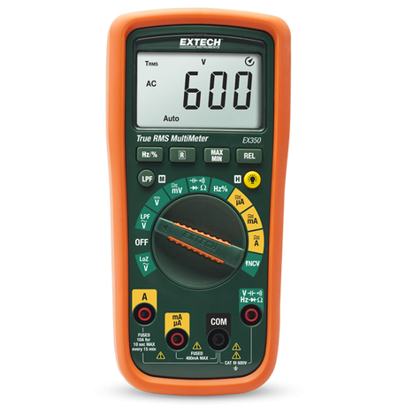 مقياس متعدد الوظائف من اكستيك EX350 ذو 11 وظيفة لقياس القيمة الجذرية التربيعية الحقيقية + مقياس الجهد بدون تلامس (NCV)