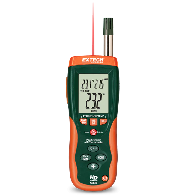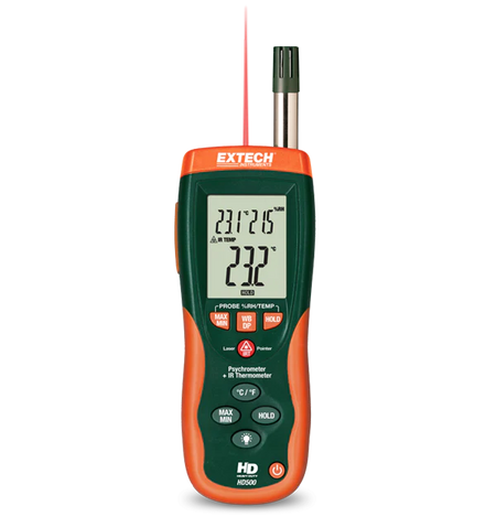 مقياس الرطوبة النفسية من اكستيك HD500 مع مقياس حرارة بالأشعة الحمراء