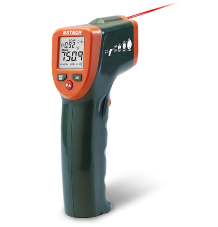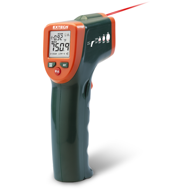 يُعدّ مقياس الحرارة بالأشعة الحمراء اكستيك IR260 جهازًا صغيرًا ومصممًا لقياسات درجة الحرارة بدون تلامس. وهو مثالي لمجموعة متنوعة من التطبيقات، بما في ذلك تشخيصات أنظمة التدفئة والتهوية وتكييف الهواء، والكهرباء، والسيارات.
