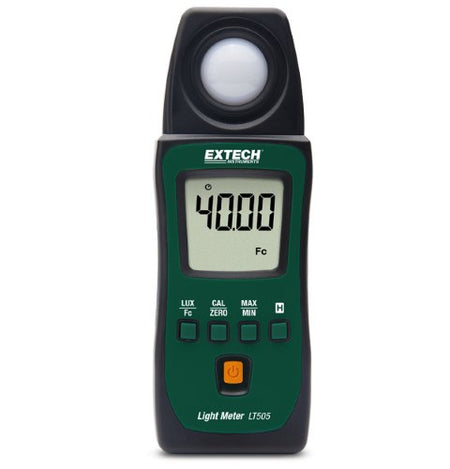 يوفر مقياس الإضاءة المحمول ذو النطاق التلقائي من إكستش نطاقات واسعة لقياس كثافة الإضاءة تصل إلى 40,000 قدم شمعداء (400,000 لوكس) بدقة عالية تصل إلى 0.01 قدم شمعداء (0.1 لوكس). وهو مثالي لاختبارات الإضاءة الداخلية وللتحقق من إضاءة الأمن والسلامة في مواقف السيارات، ومناطق أجهزة الصراف الآلي في الليل، والسلالم، والممرات.
