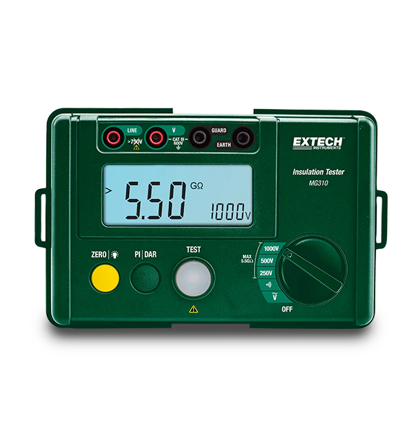 • توترات اختبارية تبلغ 250 فولت، 500 فولت، و 1000 فولت