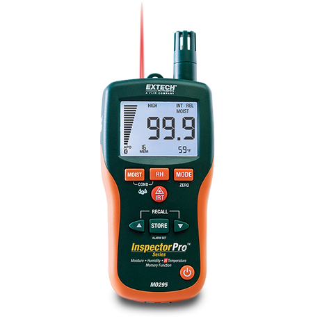 يُعد جهاز اكستيك MO295 مقياس رطوبة متعدد الاستخدامات بدون أطراف معدنية، ومزود بميزان حرارة بالأشعة تحت الحمراء (IR). تم تصميم هذا الجهاز لقياس مستويات الرطوبة في الخشب ومواد البناء الأخرى دون التسبب في تلف السطح، مع توفير قياسات درجة الحرارة بدون تلامس.