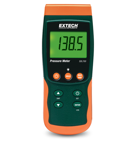 The EXTECH SDL700 is a versatile pressure meter and datalogger designed for accurate pressure measurements in various applications. It is capable of recording data on an SD card in Excel® format, making it easy to analyze and share results.