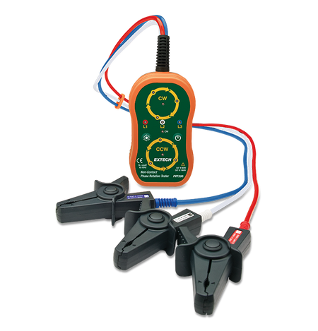 جهاز اختبار تسلسل الطور PRT200 من إكستشيك هو جهاز اختبار غير تلامسي لتسلسل الطور، يعمل بجهد دخل يتراوح بين 75 و 1000 فولت تيار متردد، ونطاق تردد من 45 إلى 65 هرتز. يتميز هذا الجهاز بأضواء LED تشير إلى ما إذا كان كل طور يعمل أم لا، واتجاه الطور؛ يصدر جهاز الإنذار صوتًا متقطعًا عند اكتشاف الطور الصحيح، وصوتًا مستمرًا إذا كان الطور معكوسًا. يسهل مفتاح ضبط سطوع LED عالي/منخفض إجراء القياسات في المناطق ذات الإضاءة الخافتة أو تحت أشعة الشمس، بينما يعني تصنيف السلامة CAT IV 600 فولت بالإضافة إلى مشابك تمساح عريضة معزولة بالكامل أنه مناسب للتطبيقات الصناعية. يأتي جهاز PRT200 مع ضمان لمدة عام، وثلاثة أسلاك اختبار مدمجة بطول 30 بوصة مع مشابك تمساح كبيرة ذات رموز ألوان، و 4 بطاريات AA، وحقيبة واقية.
