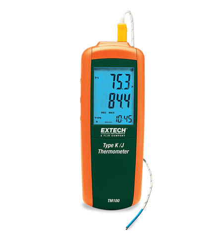 يتميز مقياس الحرارة إكستش TM100 ذو المدخل المفرد من النوع J/K بنطاق درجة حرارة واسع يتراوح من -200°C إلى 1372°C (-328°F إلى 2501°F) لقياسات النوع K، ومن -210°C إلى 1100°C (-346°F إلى 2012°F) لقياسات النوع J. يتميز بدقة عالية تبلغ 1°C/0.1°F، بالإضافة إلى شاشة LCD كبيرة ذات إضاءة خلفية مع قراءات بالدرجة السيلزية (°C) والفهرنهايتية (°F) أو الكلفن. تعمل وظيفة تثبيت البيانات على تجميد القراءة على الشاشة، ويعرض الشاشة القراءات القصوى/الحد الأدنى/المتوسطة. وتقوم القراءات بتسجيل طابع زمني نسبي. كما يُستخدم مفتاح الإزاحة لوظيفة الصفر لإجراء قياسات نسبية. يأتي مع خاصية إيقاف التشغيل التلقائي مع إمكانية تعطيلها. يأتي هذا المقياس كاملاً مع مجس حرارة سلكي من النوع K وثلاث (3) بطاريات AAA 1.5V.