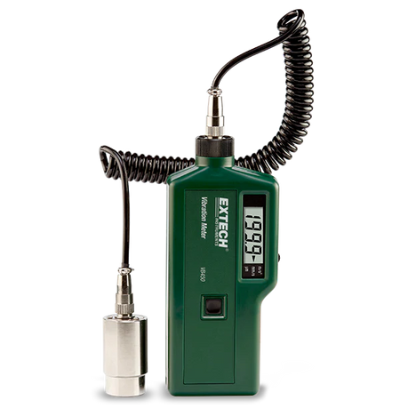 يُعد جهاز قياس الاهتزازات VB450 جهازًا صغيرًا ومريحًا يقيس مستويات الاهتزاز في الآلات الصناعية. يمكن أن تتسبب عوامل مثل عدم المحاذاة، وعدم التوازن الجيد، والعيوب الهيكلية، وعوامل أخرى في زيادة الاهتزازات غير المرغوبة. يتميز جهاز VB450 بنطاق تردد واسع من 10 هرتز إلى 1500 هرتز، ويقدم قياسات الإزاحة، والسرعة، والتعجيل. يأتي الجهاز كاملاً مع مستشعر بعيد، وحامل مغناطيسي، وبطارية 9 فولت، وحزام معصم، وحقيبة ناعمة.