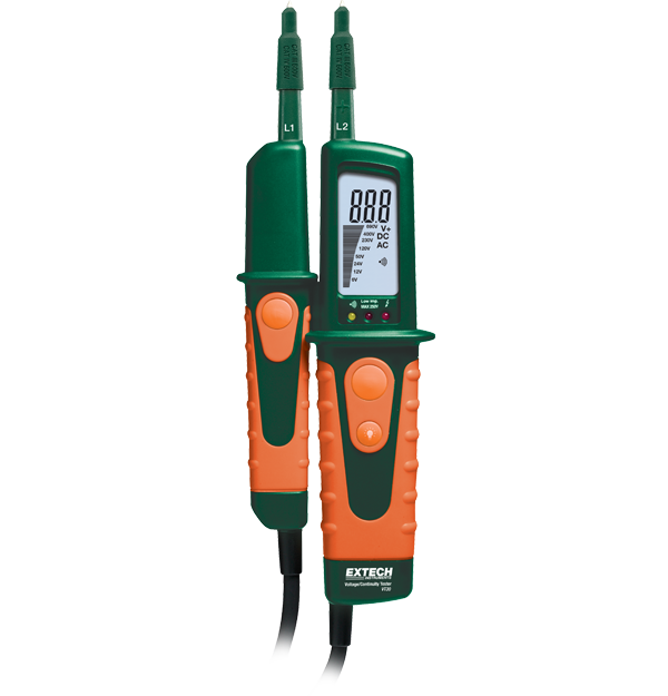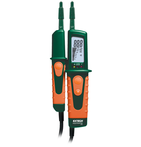 جهاز اختبار الجهد والاستمرارية والطور Extech VT30 مزود بمصباح يدوي مدمج وشاشة رقمية ذات إضاءة خلفية مع رسم بياني. يُحمي هذا الجهاز المتين غلاف مزدوج الصب من فئة IP64، ويقدم خاصية كشف الاستقطاب مع مصابيح LED للإشارة الموجبة والسالبة للتيار المستمر، بالإضافة إلى تصنيف أمان CAT III 600 فولت / CAT IV 600 فولت. يأتي جهاز VT30 كاملاً مع ضمان لمدة عام، و2 بطاريات AAA، وغطاء واقٍ، وحقيبة واقية.