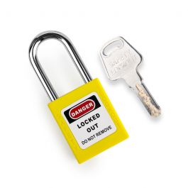 The ES-JPRS-KD-YE LOTO Padlock is a high-quality safety padlock designed specifically for Lockout/Tagout (LOTO) procedures in industrial and maintenance environments. Featuring a durable yellow body and a standard shackle, this padlock ensures clear visibility and reliable security during equipment maintenance or servicing.