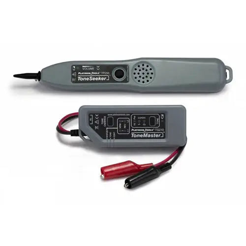 The Platinum Tools TG210K1C is a Professional Tone and Probe Kit designed for technicians to efficiently trace and locate cables and cable ends. This kit includes a high-powered tone generator and a tone tracer probe, both equipped with alligator clips for secure connections.