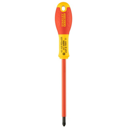 The Stanley 65-419 FM Ins SDrvrs VDE PZ#2x125mm is a high-performance insulated screwdriver designed for professional use in electrical and industrial environments. This VDE-certified tool ensures safe operation on live circuits up to 1000V. Featuring a durable Pozidriv #2 tip and an ergonomic soft-grip handle, it delivers precision, comfort, and long-lasting performance.
