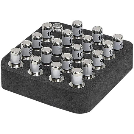 The Coax Remote Set, Push-on F Type, 19 pc. Clamshell (Model: T120C) is a specialized toolset designed for identifying and mapping coaxial cable connections. This set includes 19 numbered custom F remotes, allowing users to efficiently identify and map multiple locations simultaneously.