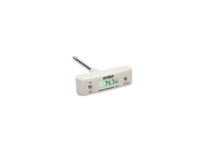 The EXTECH TM40 Corkscrew Stem Thermometer is a specialized thermometer designed for measuring temperature in solid and semi-solid materials. Its unique T-shaped design allows for easy insertion into various substances, making it ideal for applications in agriculture, laboratories, and food processing.