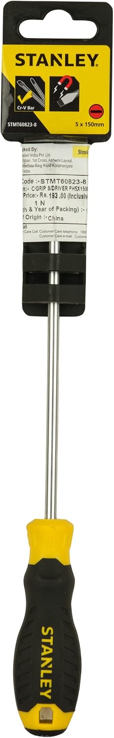 The Stanley STMT60823-8 Standard Screwdriver is a heavy-duty, professional-grade tool designed for high-reach and high-torque applications. Featuring a slotted tip with a blade width of 5mm and an extended blade length of 150mm, this screwdriver offers extended reach for deeper or harder-to-access fastening tasks.